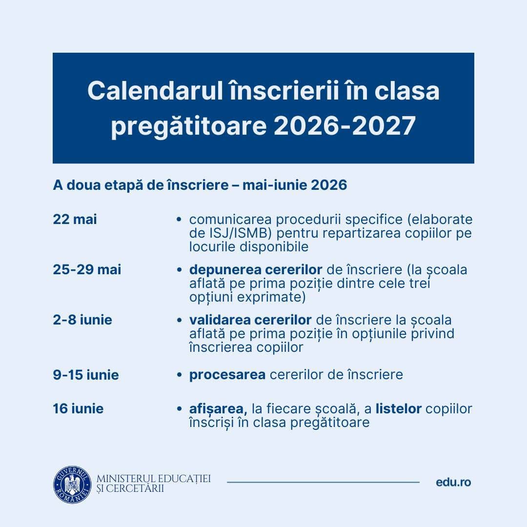 - Ordin MEC nr. 3334/26.02.2026 privind aprobarea Calendarului înscrierii în învățământul primar pentru anul școlar 2026-2027